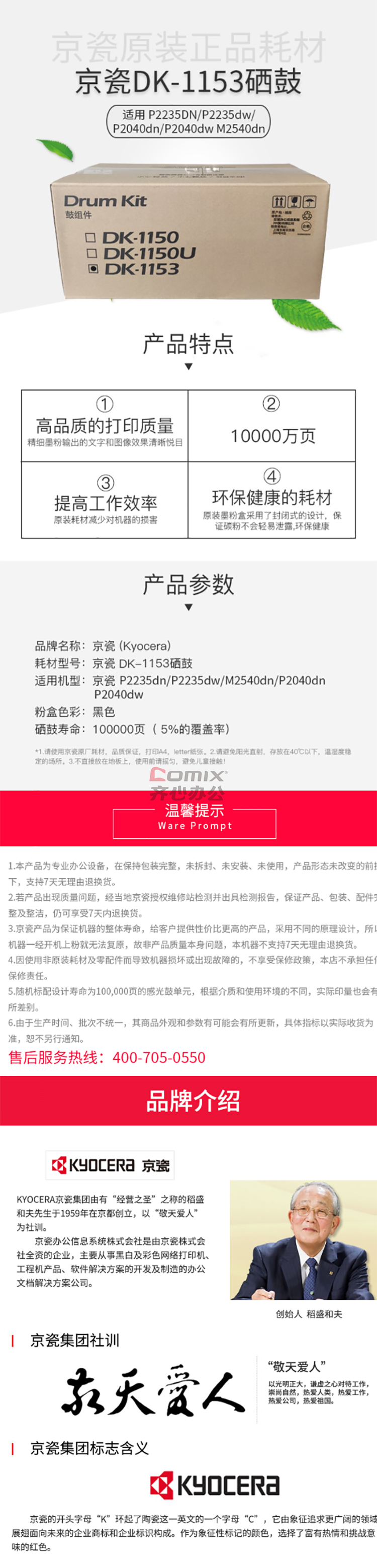 • 商品名稱:京瓷 DK-1153 硒鼓 黑色(適用P2235dn/P2235dw)(單位:個)