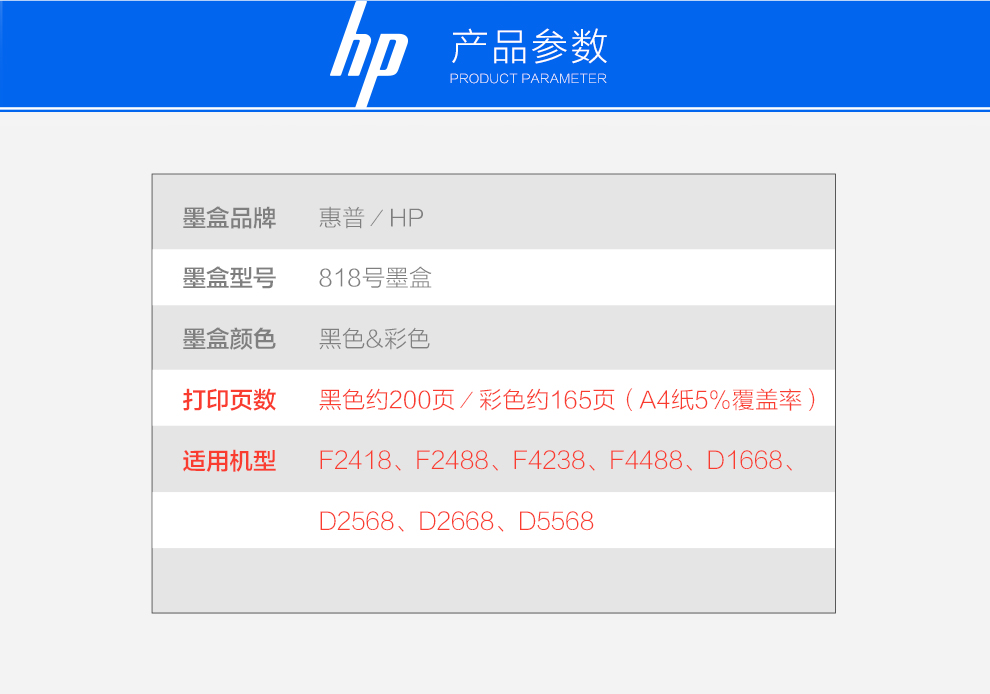 • 商品名稱:惠普(HP)CC643ZZ 818號(hào) 彩色墨盒(適用Deskjet D1668 D2568 D2668)