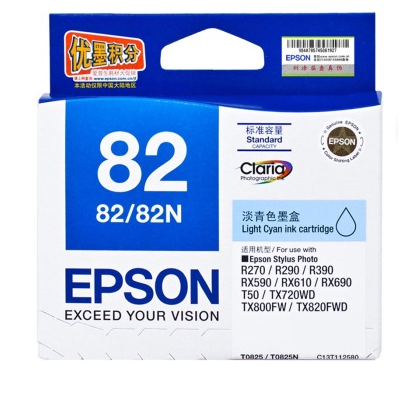 • 商品名稱:愛普生(Epson)T0825/0825N 淡青色墨盒 C13T112580(適用Photo R27