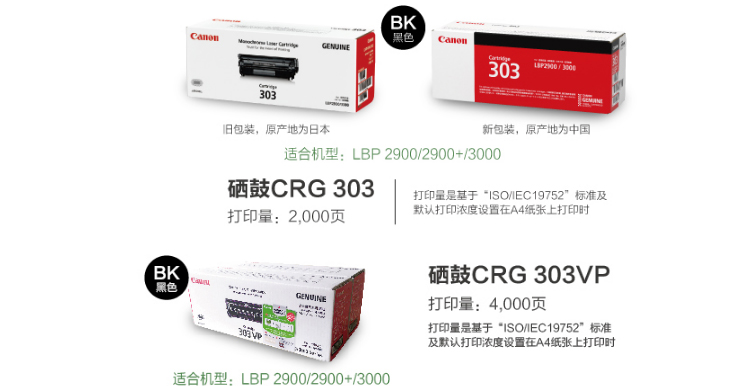 • 商品名稱:佳能(Canon)CRG 303 黑色硒鼓(適用LBP-2900 3000)