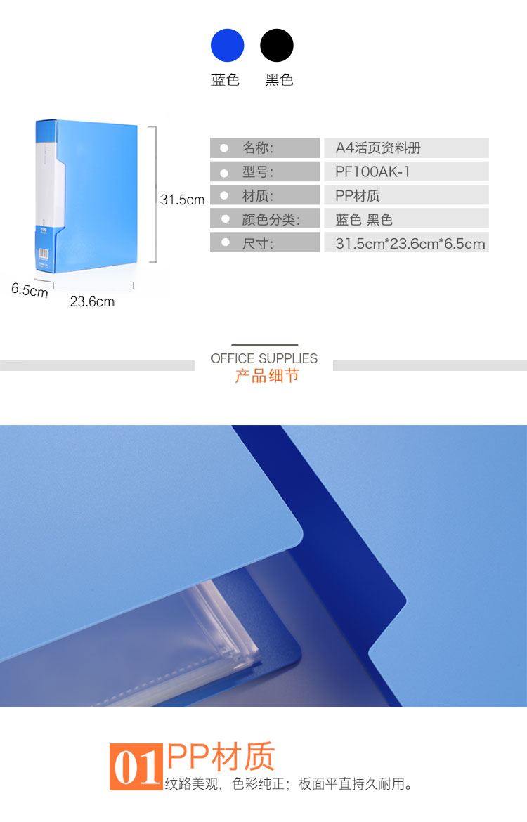 • 商品名稱:齊心(Comix) PF100AK-1 大容量100頁A4資料冊/文件冊 配外殼 藍(lán)色