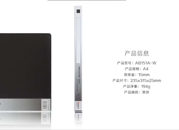 • 商品名稱:齊心(Comix) AB151A-W 堅固文件夾/資料夾/雙強力夾A4 黑色