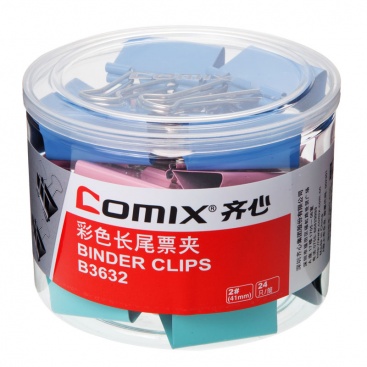 • 齊心(COMIX)24只41mm彩色長(zhǎng)尾夾票夾金屬票據(jù)夾燕尾夾鐵夾子辦公 大號(hào) B3632
