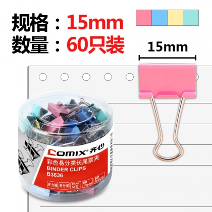• 商品名稱:齊心(COMIX)60只15mm彩色長(zhǎng)尾夾票夾金屬票據(jù)夾燕尾夾鐵夾子辦公 小號(hào) B3636