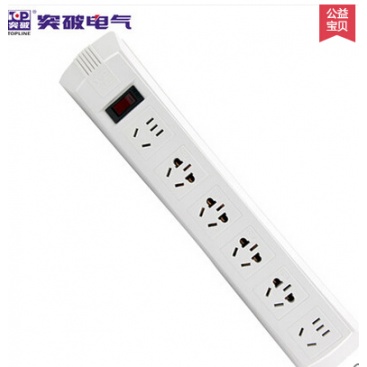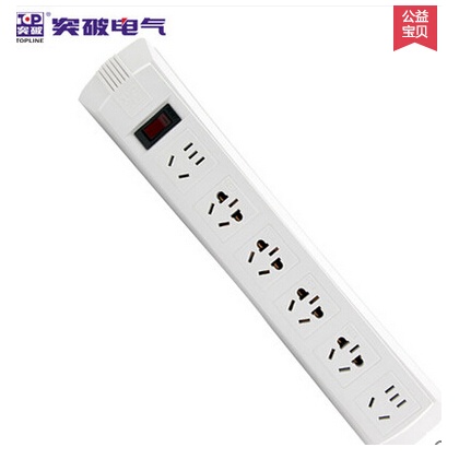 • 基準(zhǔn)六聯(lián)電源插座 突破(Top) #TZ-C162 一控六,雙排,線長(zhǎng)3米,額定電流:10A,額定電