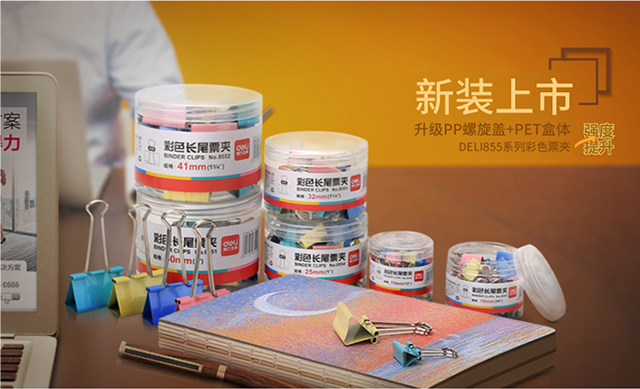 • 得力(deli)12只50mm彩色長(zhǎng)尾票夾 金屬票據(jù)夾燕尾夾鐵夾子 大號(hào)8551