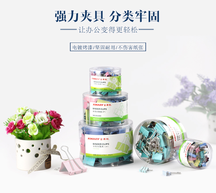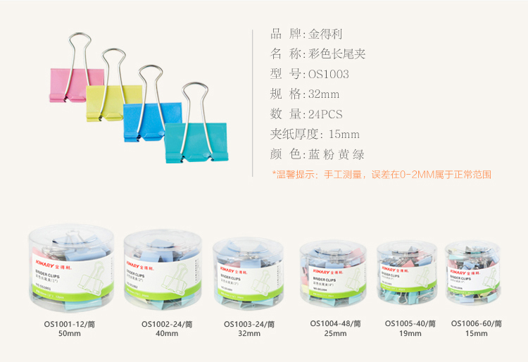 • 商品名稱:金得利(KINARY)OS1003 彩色長尾夾票夾 3# 32mm 彩色 24只/筒