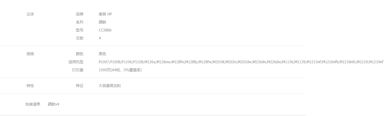• 商品名稱:繪威 CC388A 88A 易加粉4支裝打印機(jī)硒鼓(