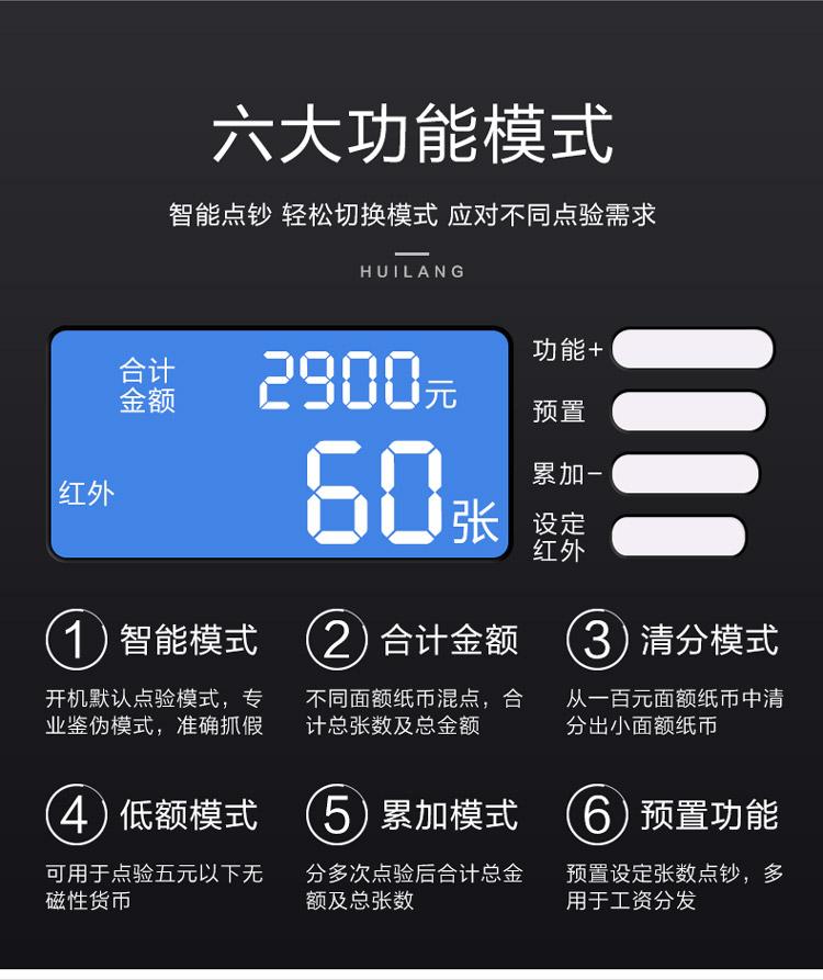 • 惠朗(huilang)828B類銀行專用語音報警點鈔機驗鈔機 USB升級