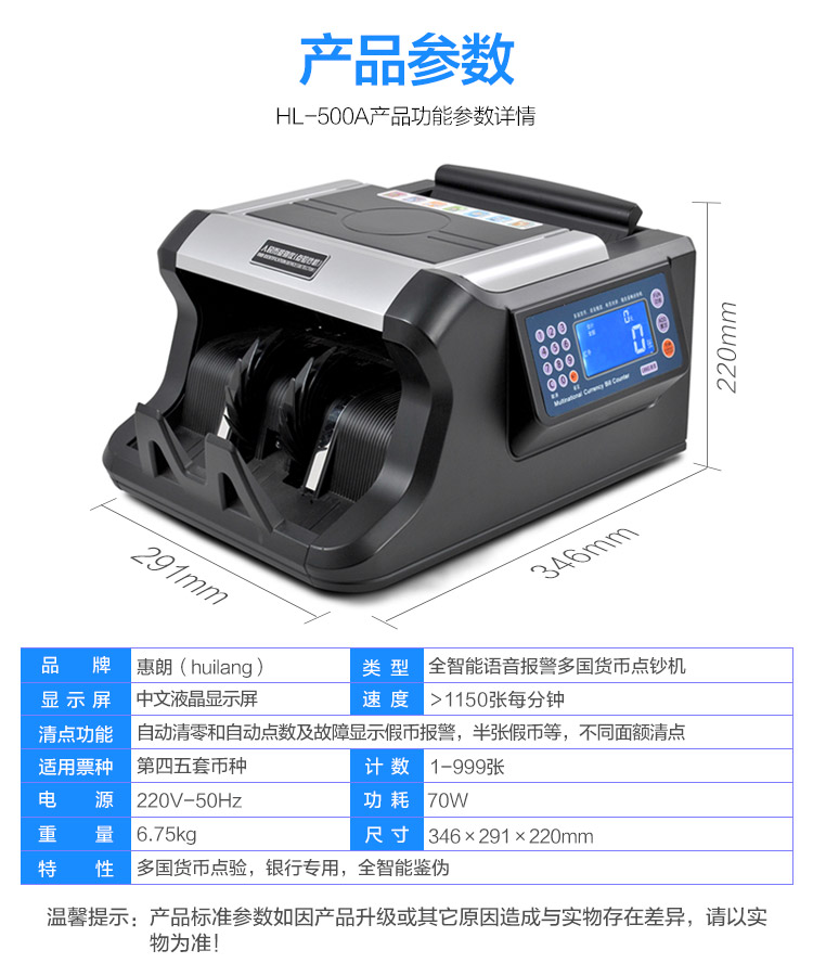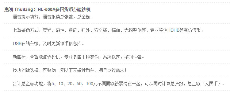 • 商品名稱:惠朗(huilang)HL-500A外幣點鈔機驗鈔機