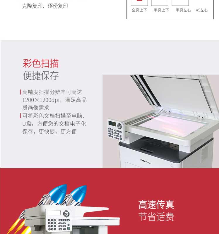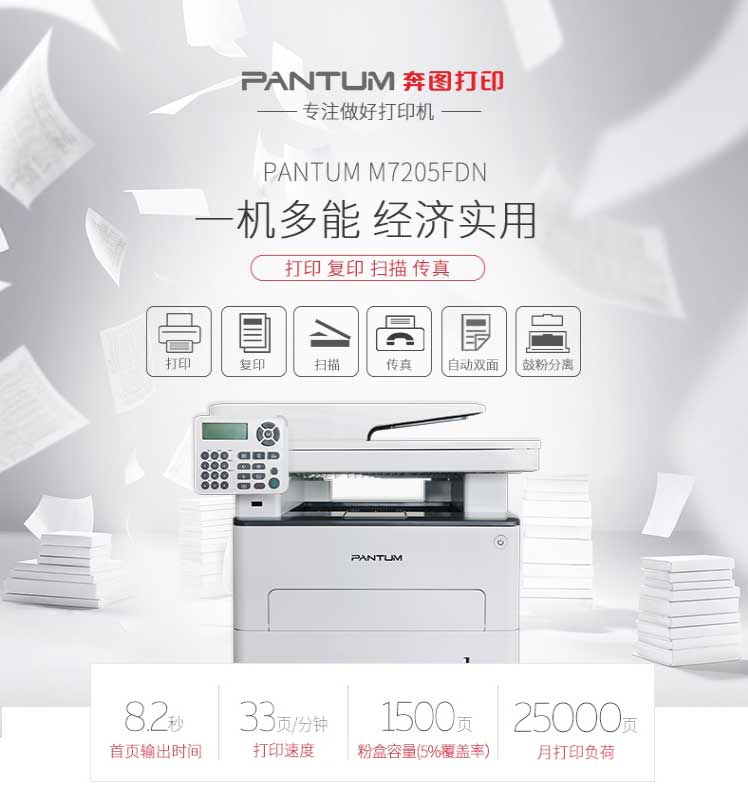 • 奔圖(PANTUM)M7205FDN黑白激光多功能一體機(jī) 打印復(fù)印掃描傳真