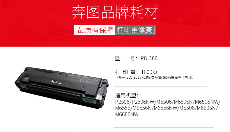 • 商品名稱:奔圖(PANTUM)PD-206 硒鼓(適用于P2506系列/M6506系列/M6556系列/M66