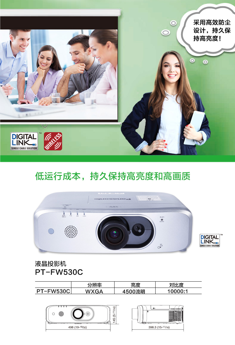 • 商品名稱(chēng):松下(Panasonic)PT-FW530C投影儀辦公工程投影機(jī)4500流明