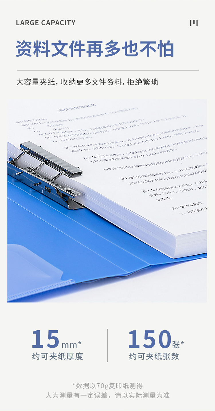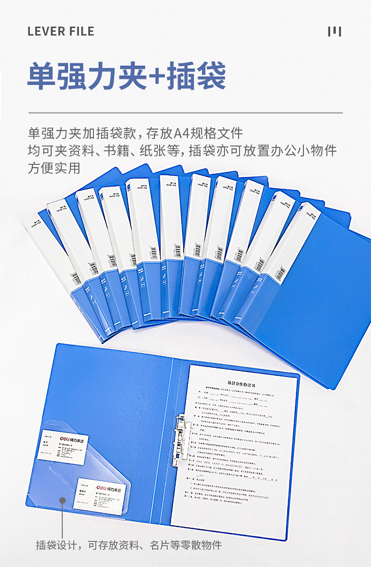 • 商品名稱(chēng):得力(deli)A4金屬單強(qiáng)力夾+插頁(yè)袋硬文件夾 大容量試卷資料夾詩(shī)朗誦簽約夾板 文件收納辦公用品5301藍(lán)色1只