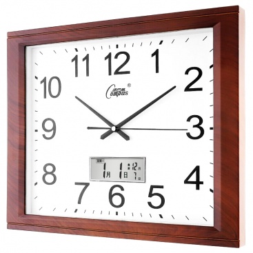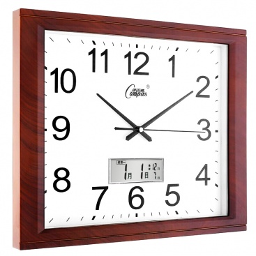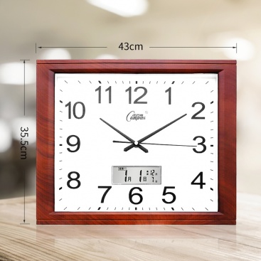 • 商品名稱:康巴絲(Compas)掛鐘17英寸萬年歷創(chuàng)意靜音客廳鐘表方形簡約時鐘居家辦公掛表電子石英鐘C2524Y仿木