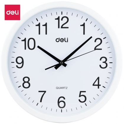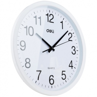 • 得力(deli)時(shí)尚簡(jiǎn)約掛鐘 客廳辦公通用時(shí)鐘 辦公用品 白色