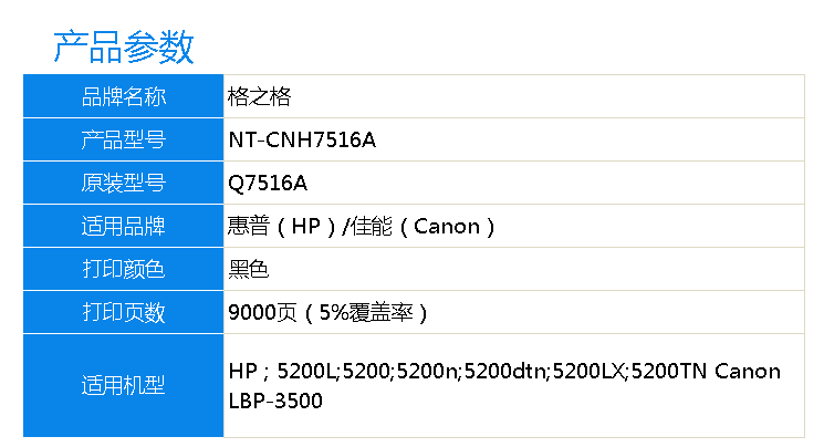 • 商品名稱:NT-7516A適用惠普hp5200 5200n 5200LX 5200TN打印機(jī)耗材佳能LBP3500粉盒HP16A硒鼓