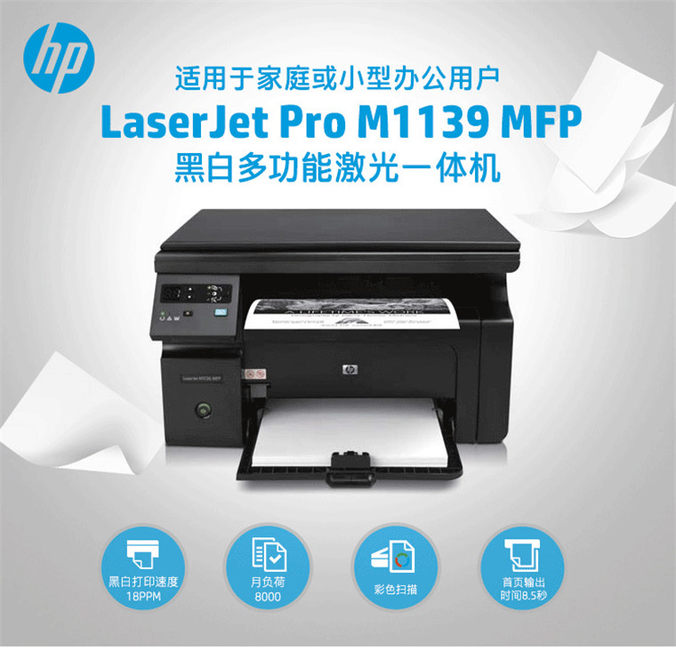 • 商品名稱:惠普(HP)LaserJet Pro M1139 多功能激光一體機 (打印 復印 掃描)