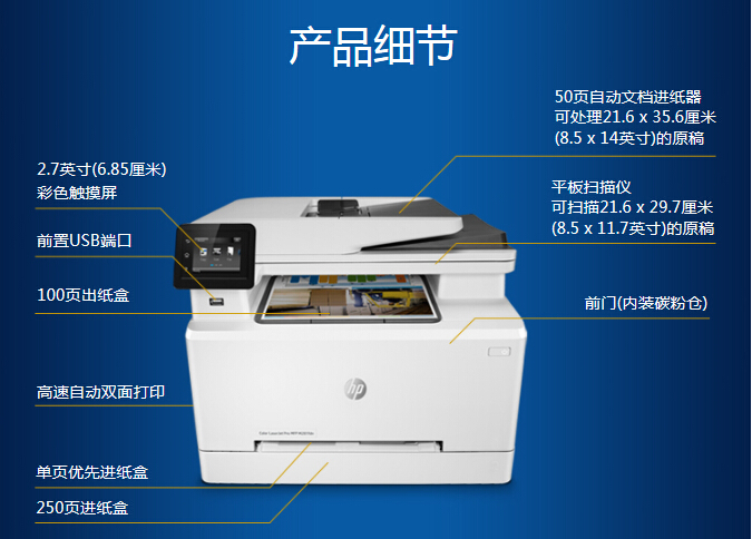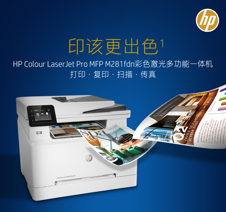 • 惠普(HP)Colour LaserJet Pro M281fdn彩色激光多功能一體機(jī)(打印 復(fù)印 掃描 傳真)