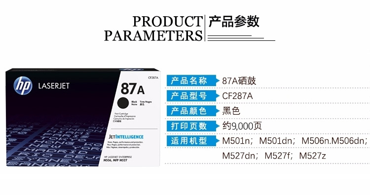 • 商品名稱:惠普(HP)CF287A 87a硒鼓 適用HP501n/dn 506n/dn 527dn 惠普CF287A (經典單只裝)