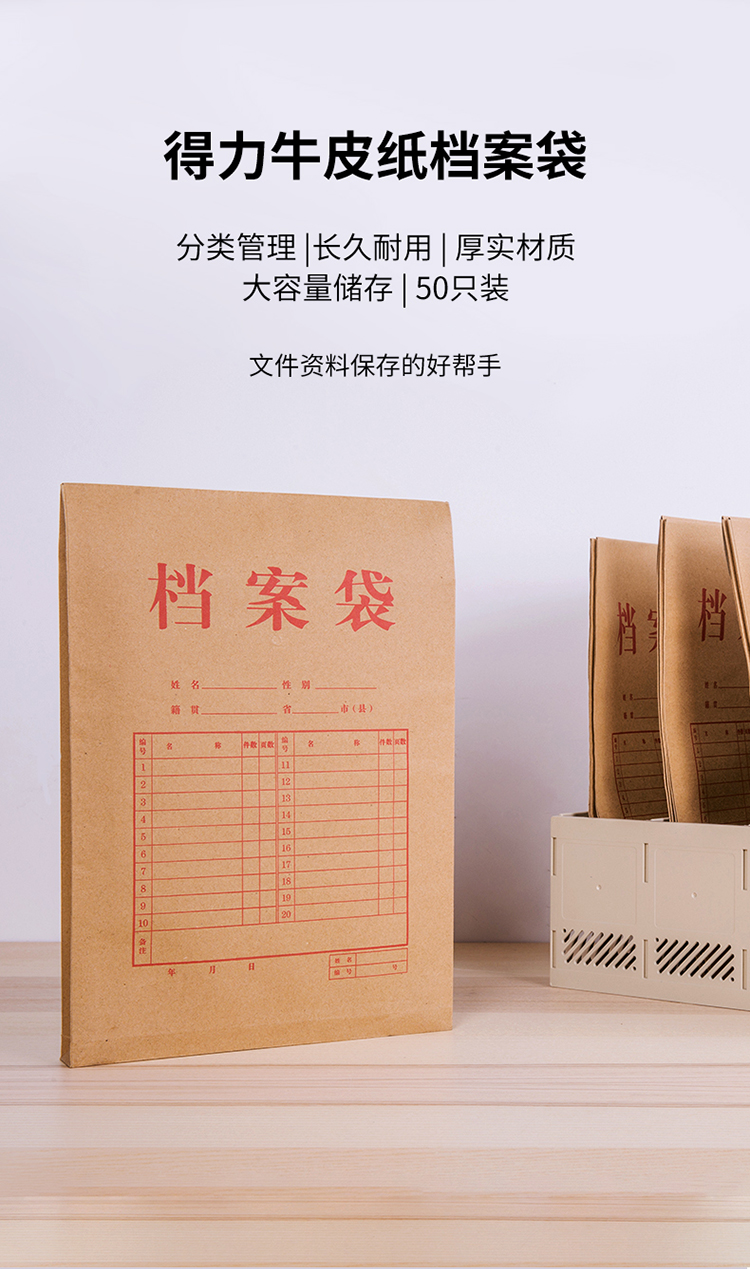 • 商品名稱:得力(deli)50只A4牛皮紙檔案袋 側(cè)寬4cm 標書合同文件資料袋 票據(jù)收納袋175g27044