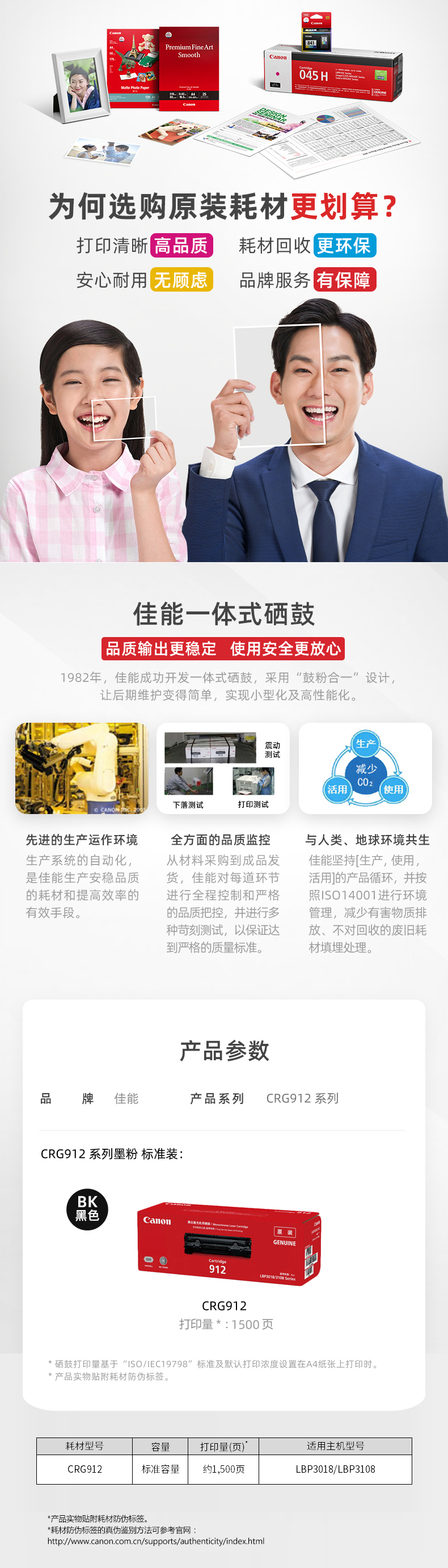 • 商品名稱:佳能(Canon)硒鼓CRG912 黑色(適用LBP3018/LBP3108)
