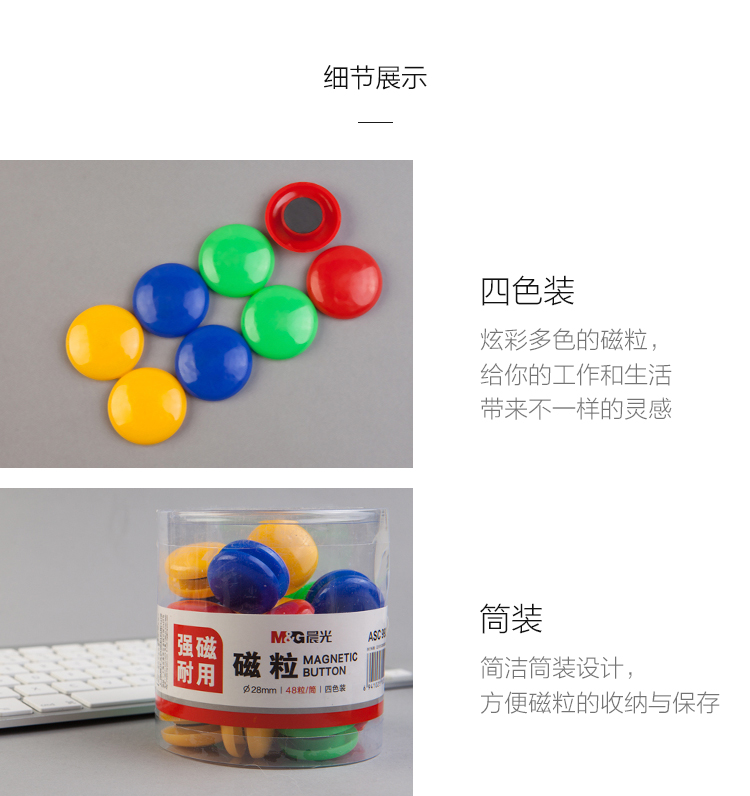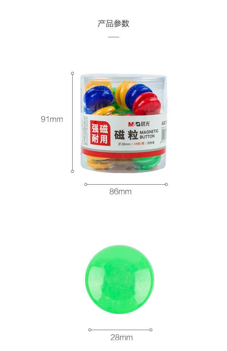 • 商品名稱:晨光(M&G)強(qiáng)磁粒白板專用磁扣磁釘磁貼吸鐵石 直徑2.8cm*48粒ASC99398 1筒裝