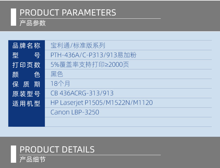 • 商品名稱:寶利通(POLYCOM) PTH-436易加粉 硒鼓 適用于HP Laserjet P1505/P1522/P1319/M1120