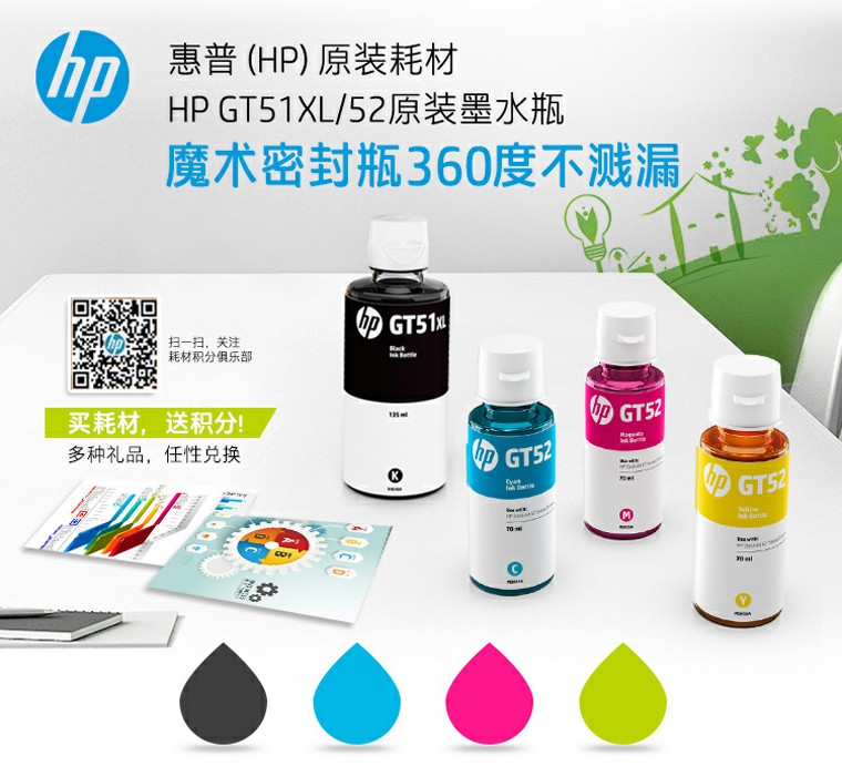 • 商品名稱:惠普(HP)GT51 52墨水 適用5810 5820 打印機(jī)墨水 惠普 GT-52青色墨水 (約8000頁)