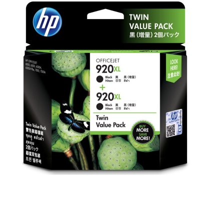 • 商品名稱:惠普(HP)CD975AA 920XL號(hào)超高容黑色墨盒 適用6000 6500 7700 920XL黑色雙包(黑1200頁+黑1200頁)