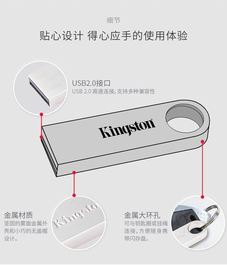 • 商品名稱:金士頓(Kingston)16GB U盤(pán) DTSE9H 金屬 銀色 精巧時(shí)尚 穩(wěn)定可靠