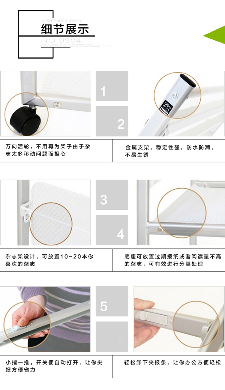 • 商品名稱:得力(deli)五層鋁合金夾條報紙架報刊架 圖書館報夾條置 宣傳資料雜志展示架 高1.05米9304