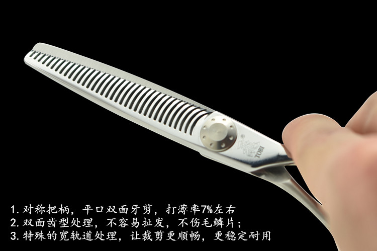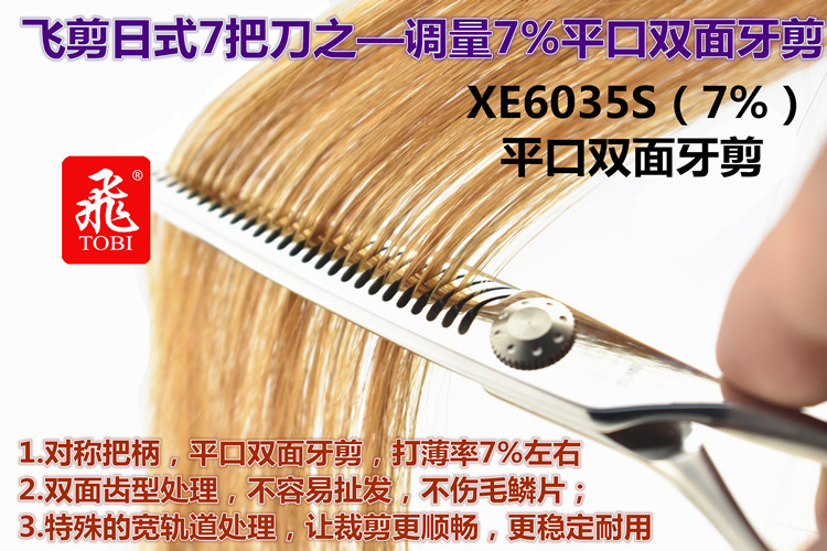 • 新款裁剪7%去量美發(fā)理發(fā)TOBI飛牌剪刀XE6035S牙剪 金屬聲