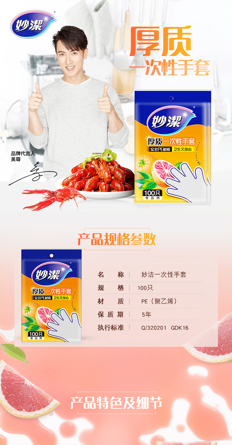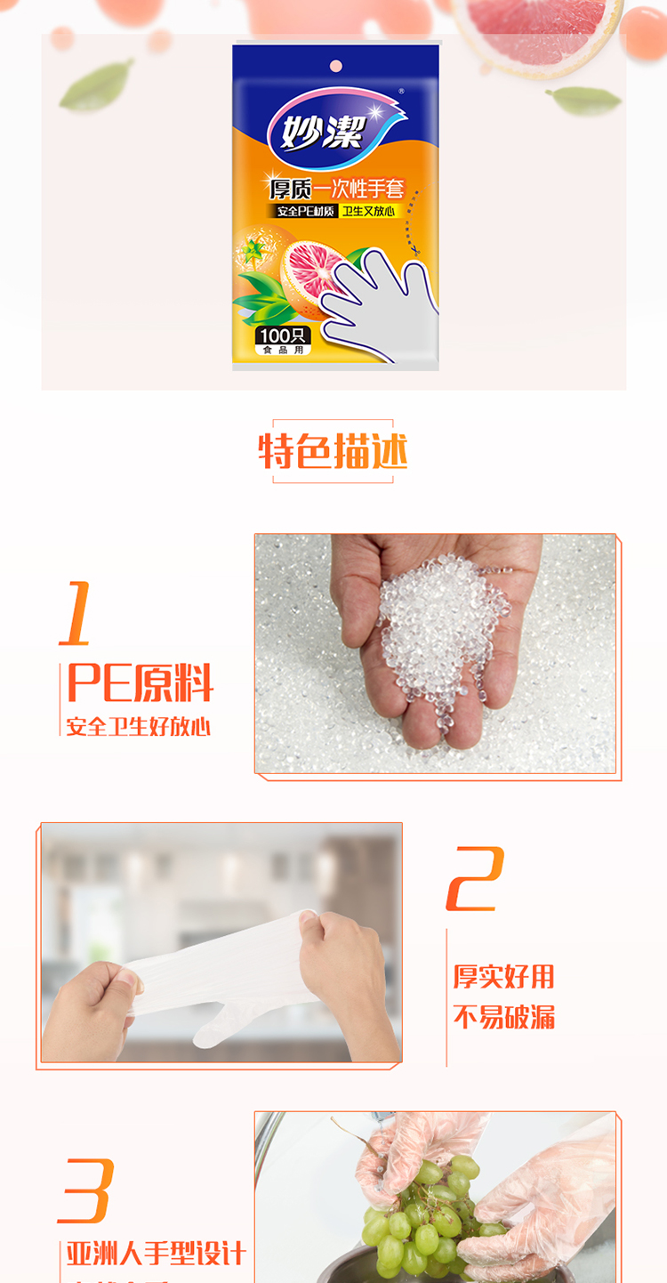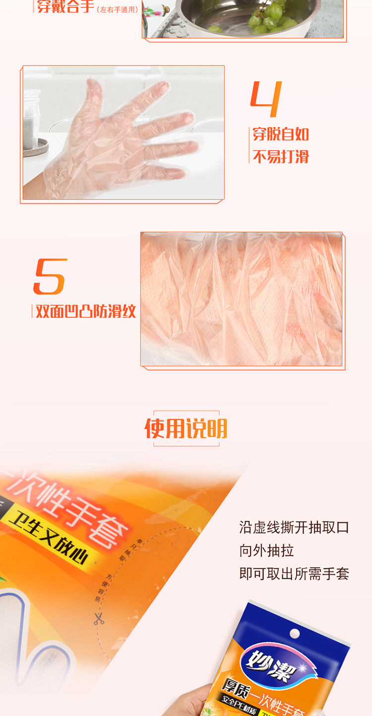 • 商品名稱:妙潔 一次性手套抽取式厚實手套餐桌野炊100只裝
