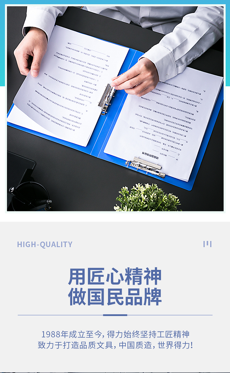 • 商品名稱:得力(deli)A4金屬雙強力夾硬文件夾 大容量試卷資料夾詩朗誦簽約夾板 文件收納辦公用品5302