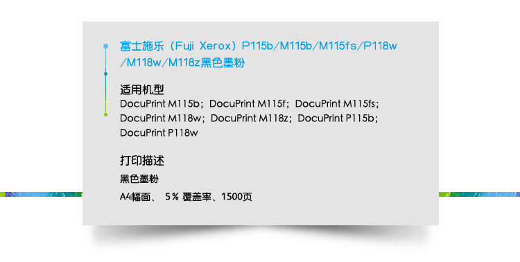 • 商品名稱:富士施樂(Fuji Xerox)P115b/M115b/M115fs/P118w/M118w/M118z黑色墨粉筒 粉盒
