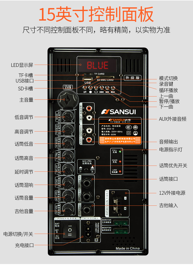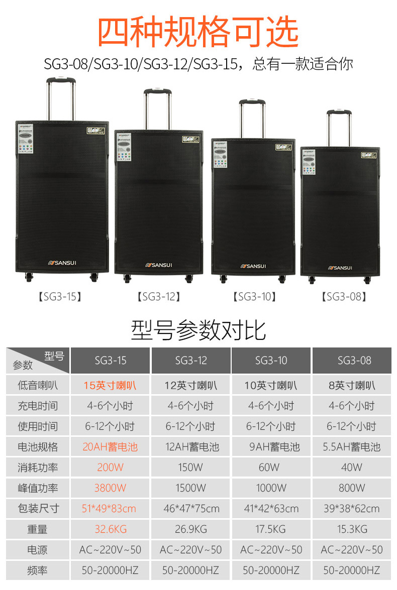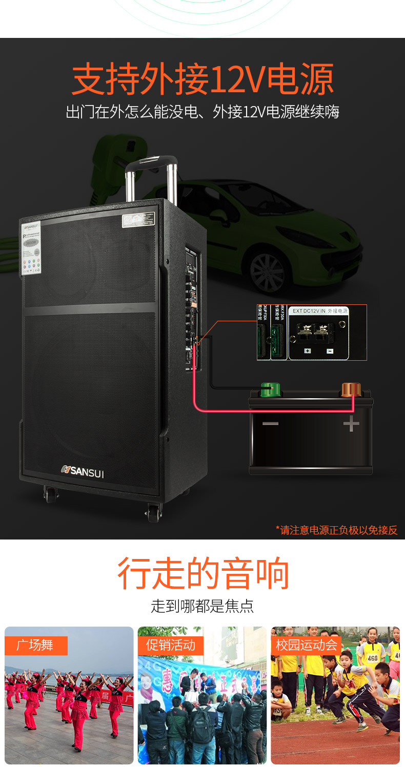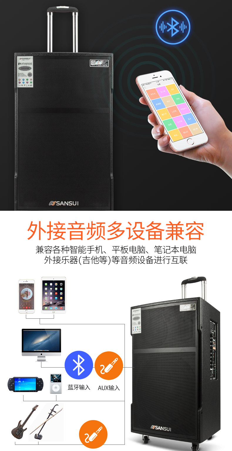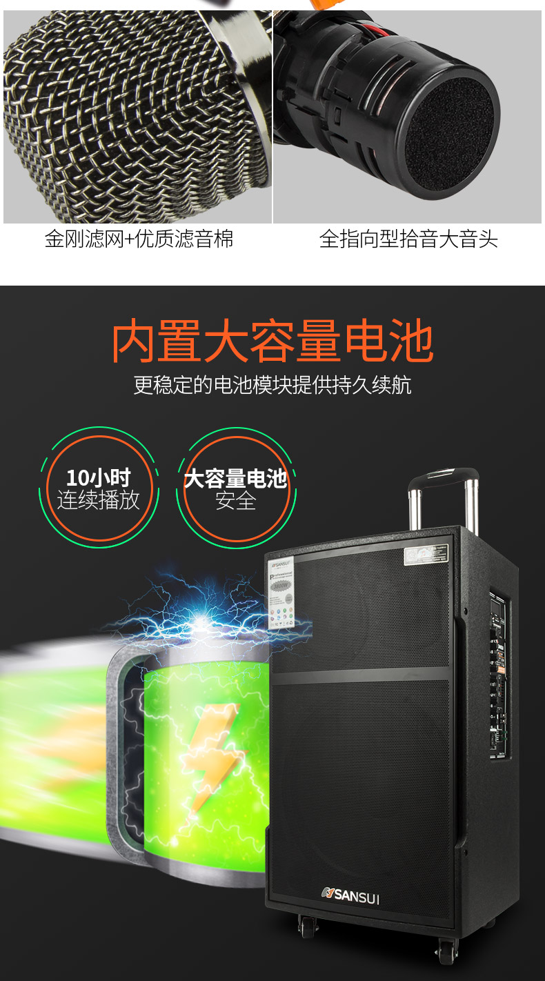 • 商品名稱:山水 sansui SG3-15 廣場舞音響 戶外便攜式藍牙拉桿音箱雙麥克風15英寸