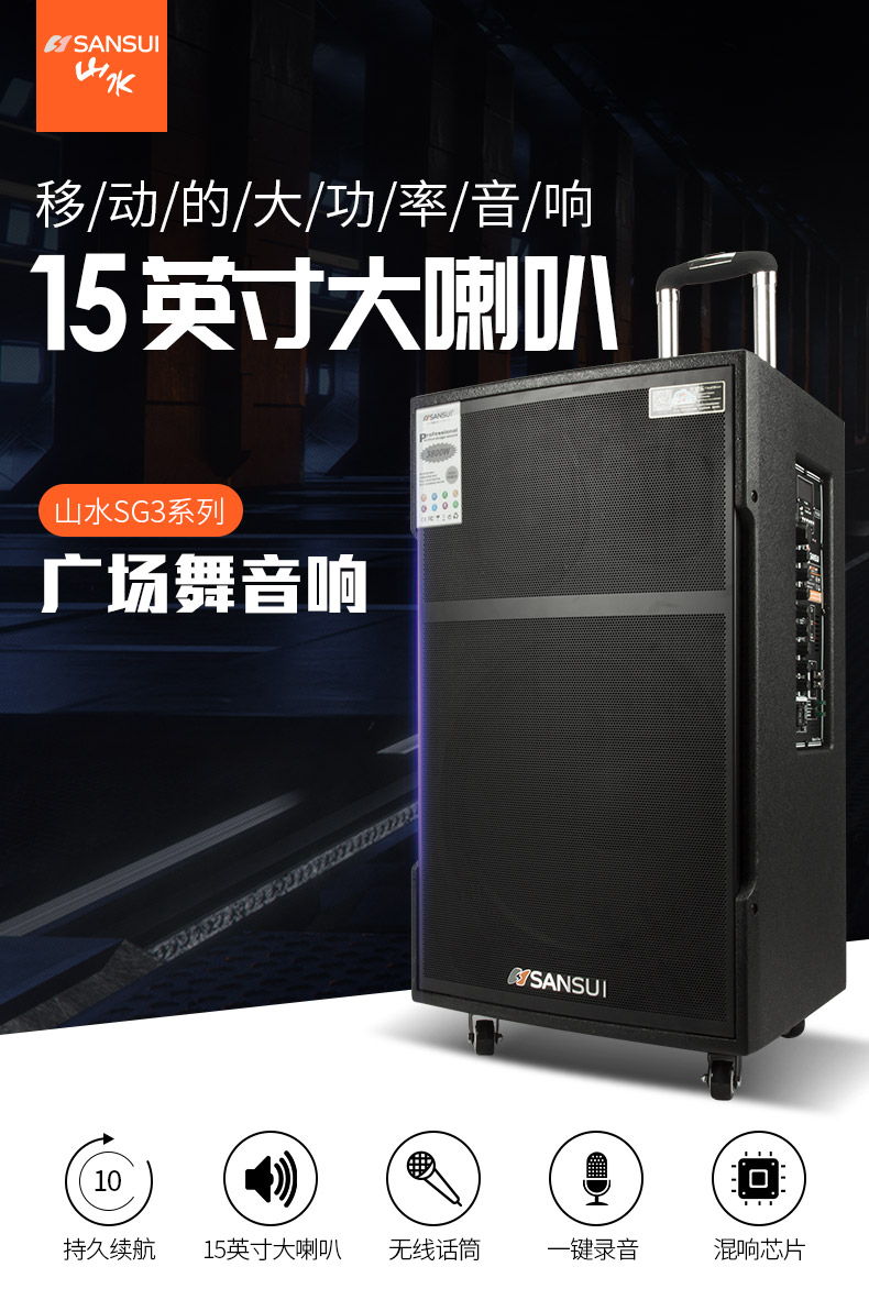 • 山水 sansui SG3-15 廣場舞音響 戶外便攜式藍牙拉桿音箱雙麥克風15英寸