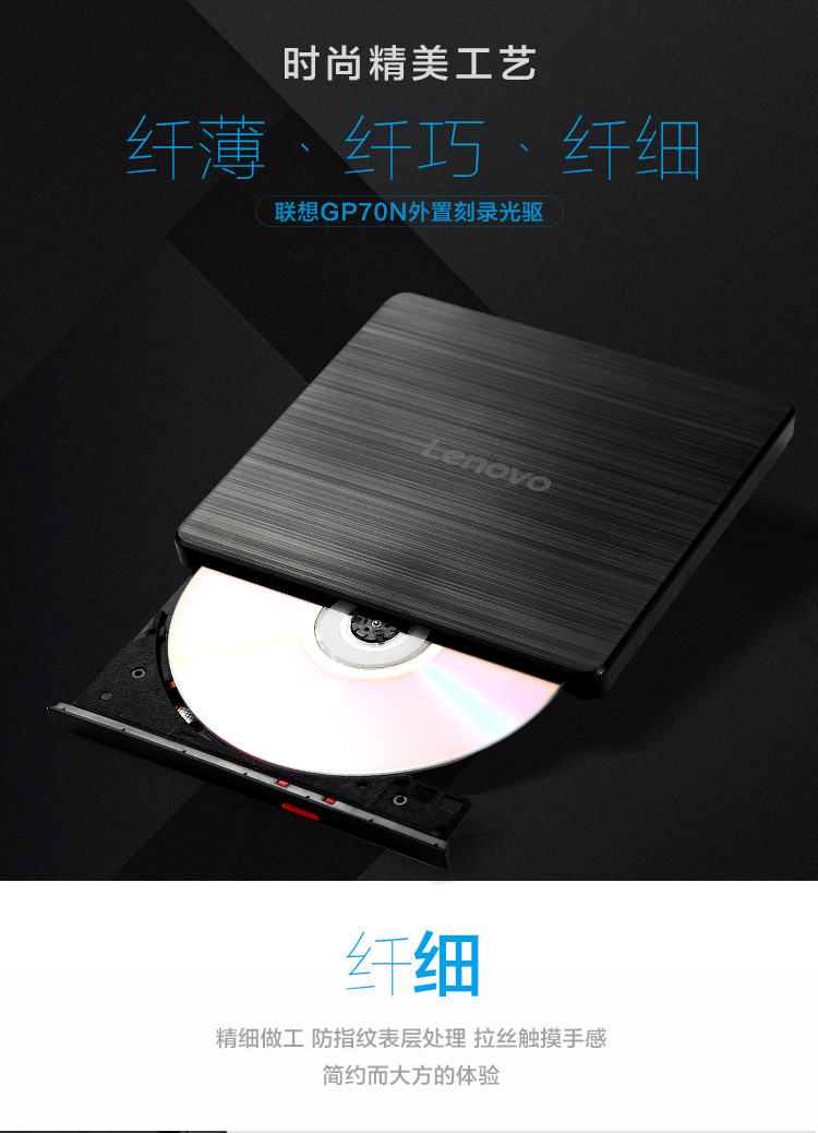 • 聯(lián)想(Lenovo)8倍速 USB2.0 外置光驅(qū) 外置DVD刻錄機(jī) 移動(dòng)光驅(qū) 黑色(兼容Windows/蘋果MAC系統(tǒng)/GP70N)