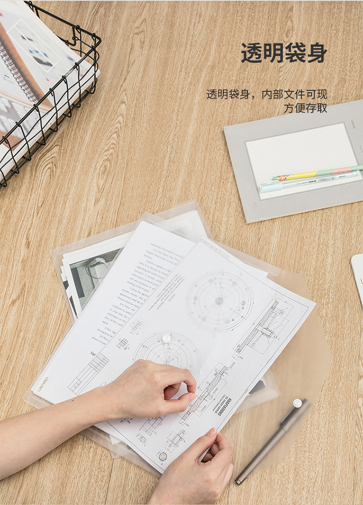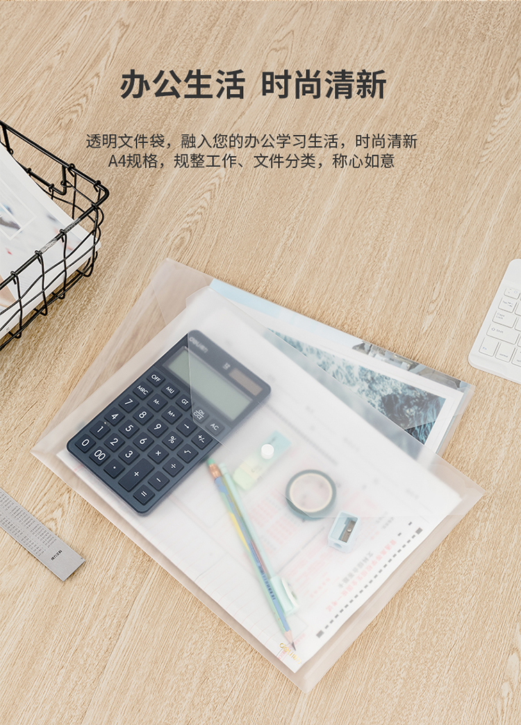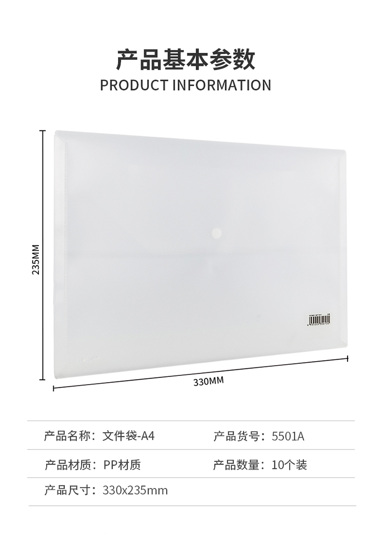 • 商品名稱:得力(deli)10只A4加厚文件袋 透明按扣資料袋 防水檔案袋公文袋 辦公用品 5501A