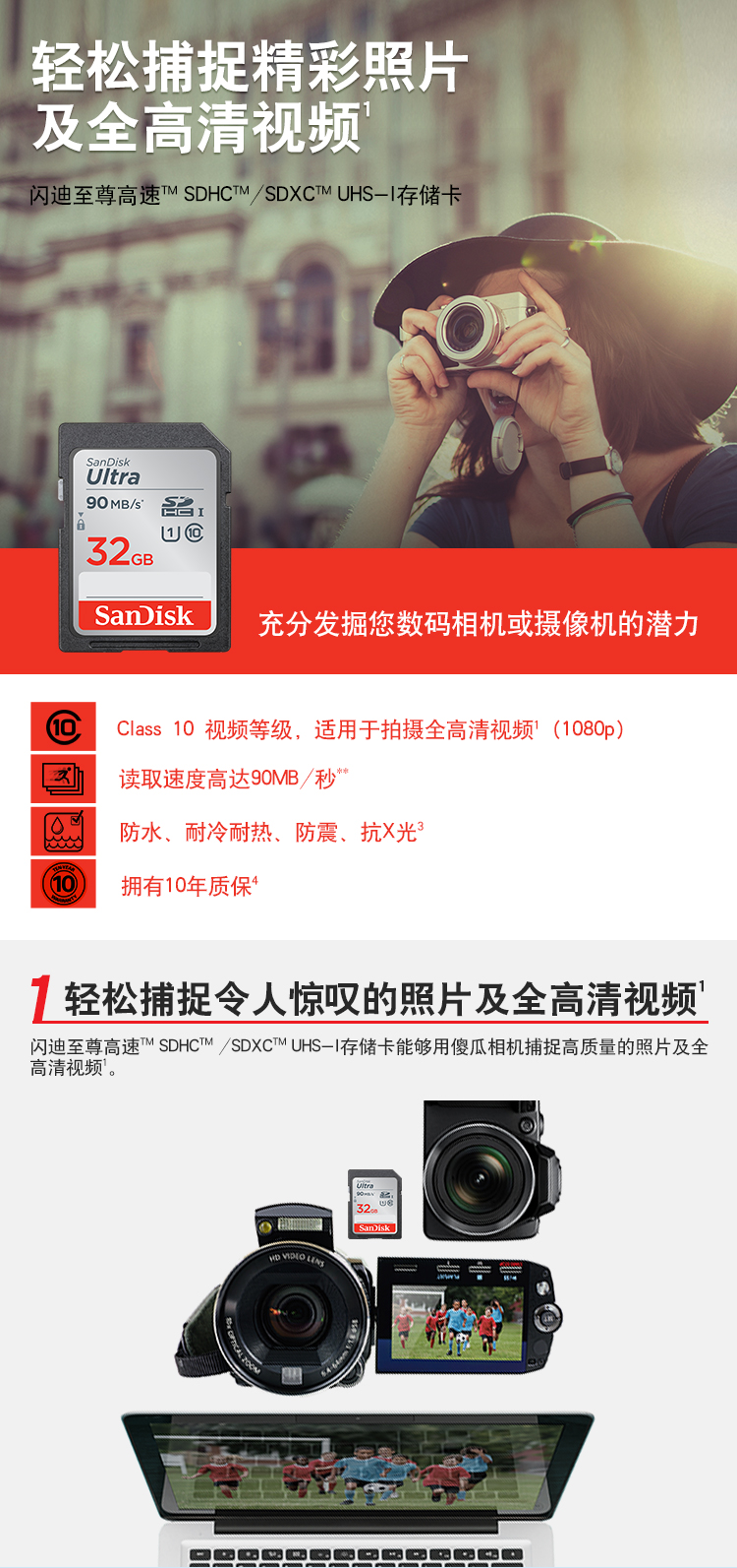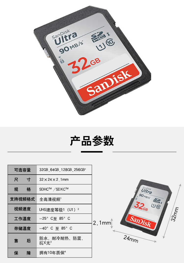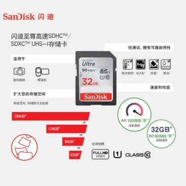 • 商品名稱:閃迪(SanDisk)32GB SD存儲卡 C10 至尊高速版內(nèi)存卡 讀速90MB/s 捕捉全高清 數(shù)碼相機理想伴侶