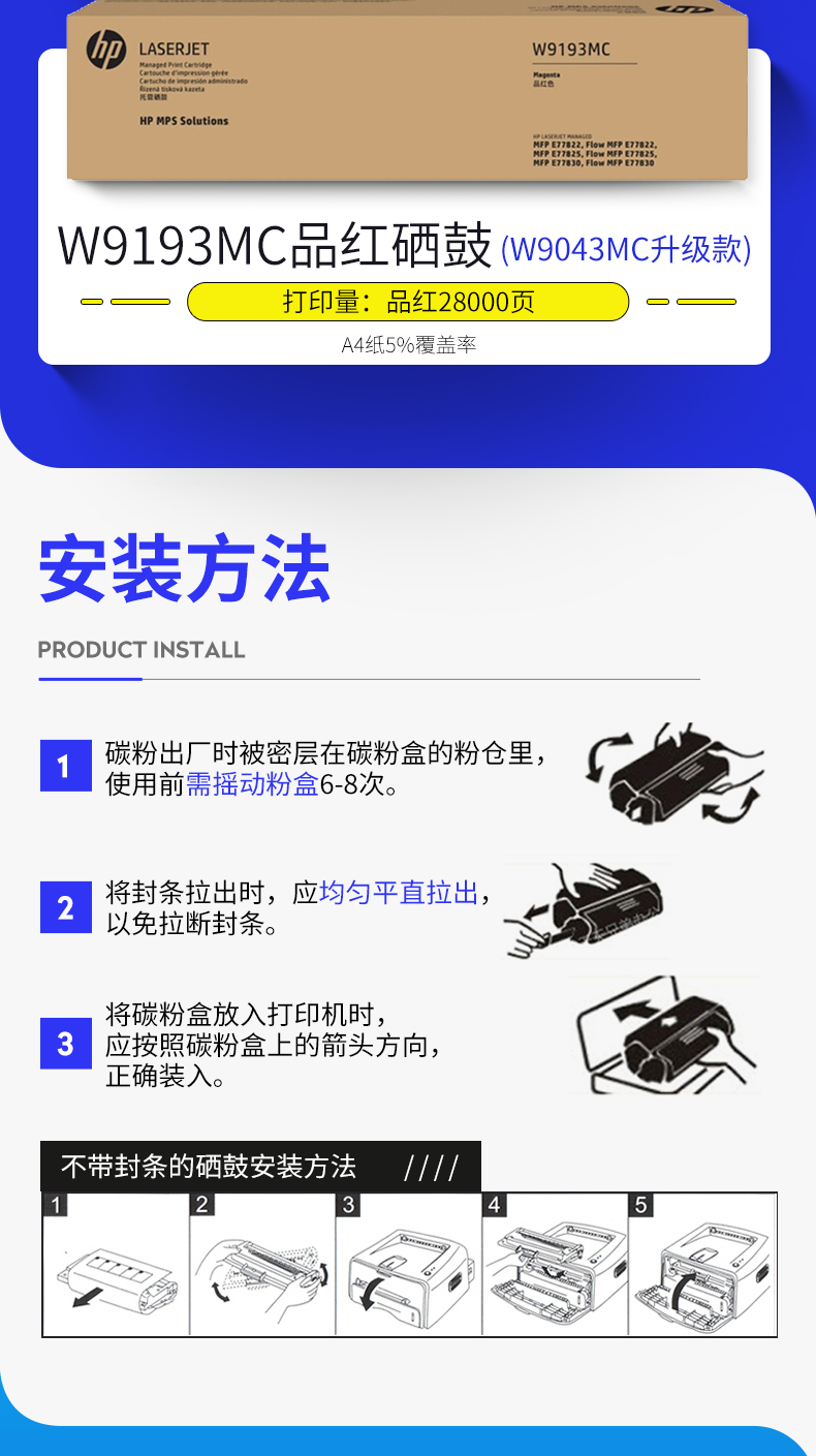 • 商品名稱:惠普(hp)W9191MC青色墨粉盒 E77822dn/z/77825dn/z/打印機代替W9041MC