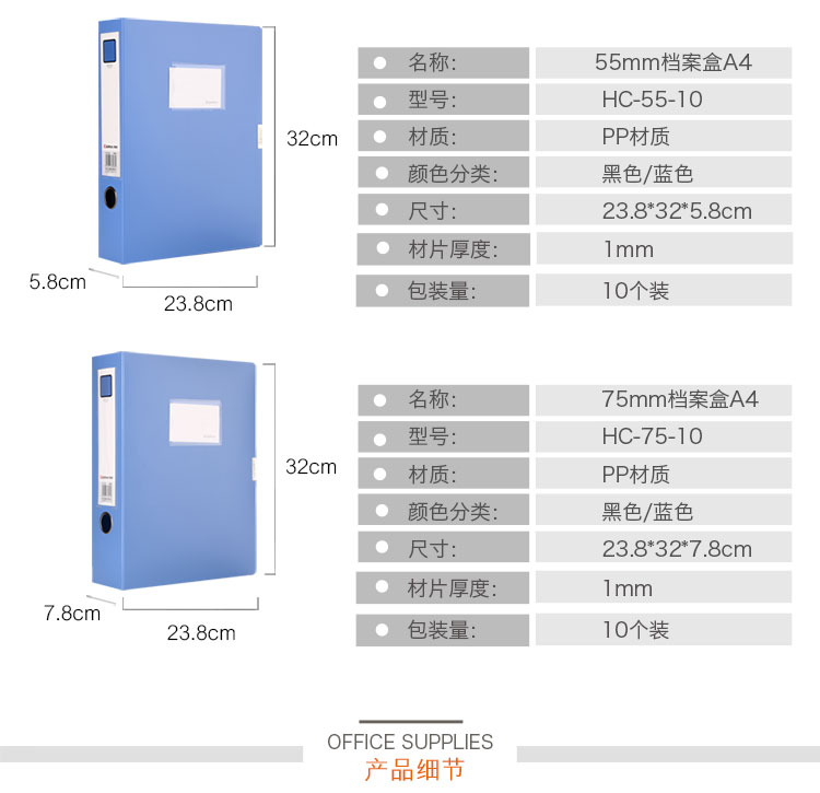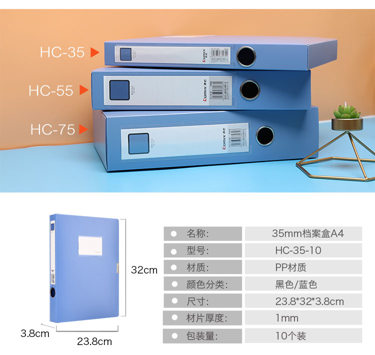 • 商品名稱:齊心(Comix) 10個裝 35mm加厚粘扣檔案盒 A4文件盒/資料盒 HC-35-10 藍色