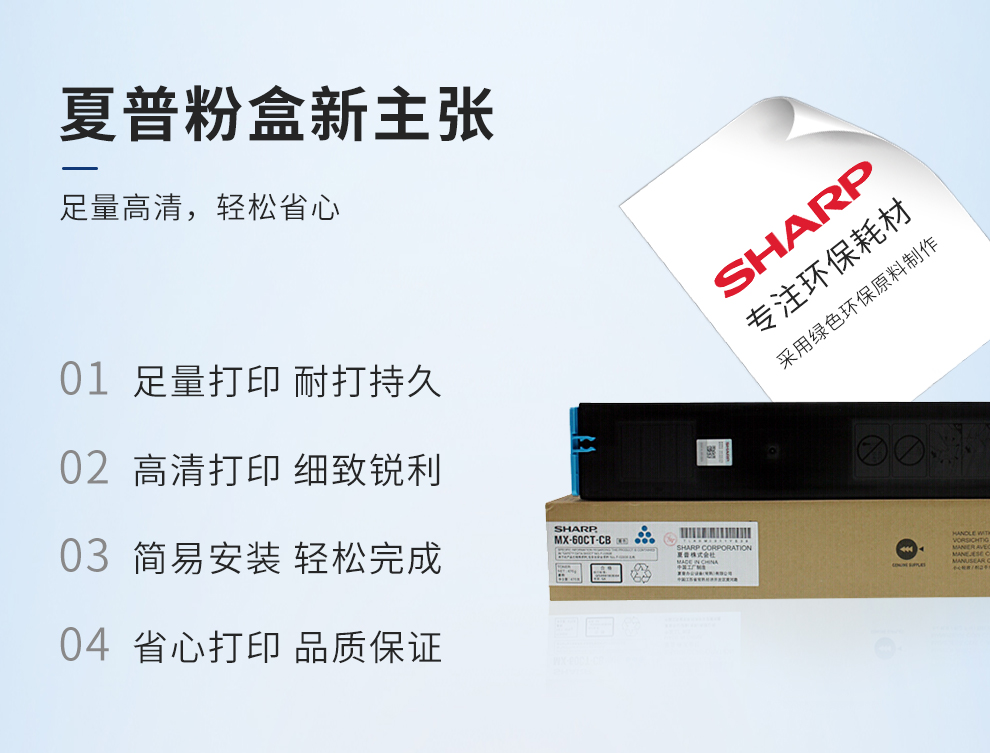 • 夏普(SHARP)MX-60CT-CB 青色墨粉盒(適用MX-C3081/C3581/4081機(jī)型)約24000頁(yè)