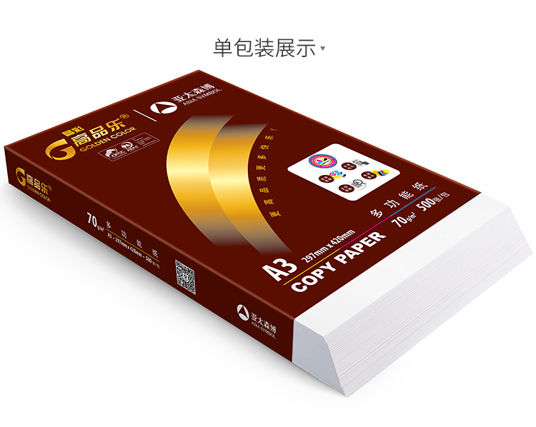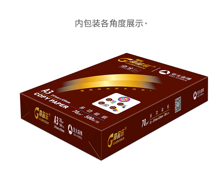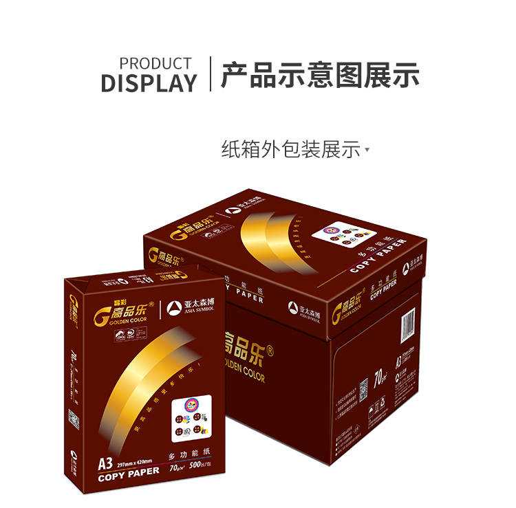 • 商品名稱:高品樂(GOLDEN COLOR)亞太森博晶彩高品樂A3復(fù)印紙 (70gA3) 500張/包 5包/箱