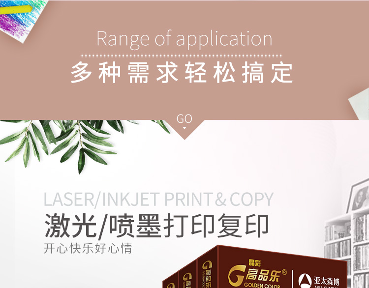 • 高品樂(GOLDEN COLOR)亞太森博晶彩高品樂A3復(fù)印紙 (70gA3) 500張/包 5包/箱