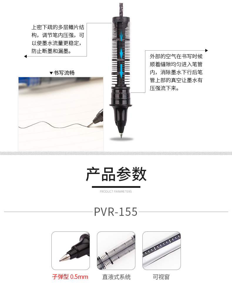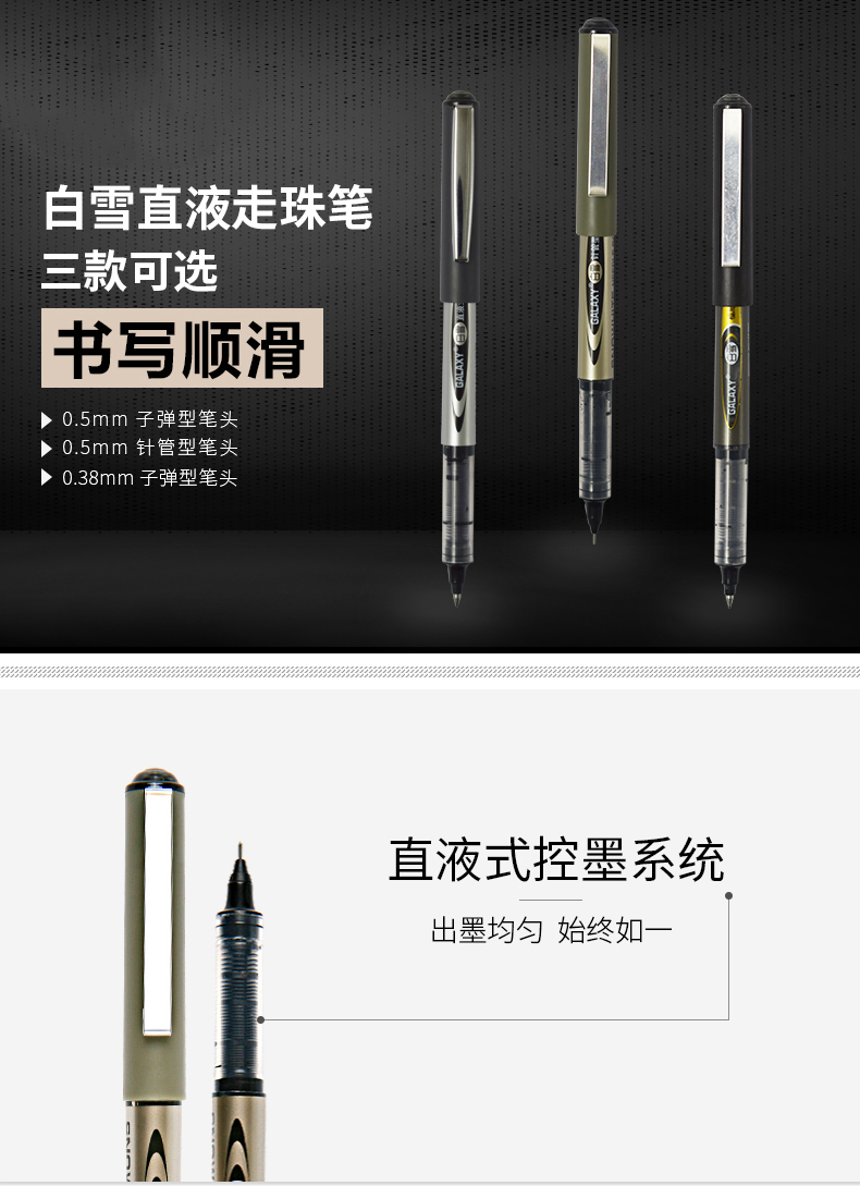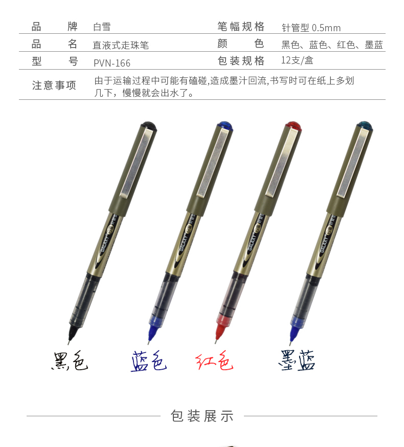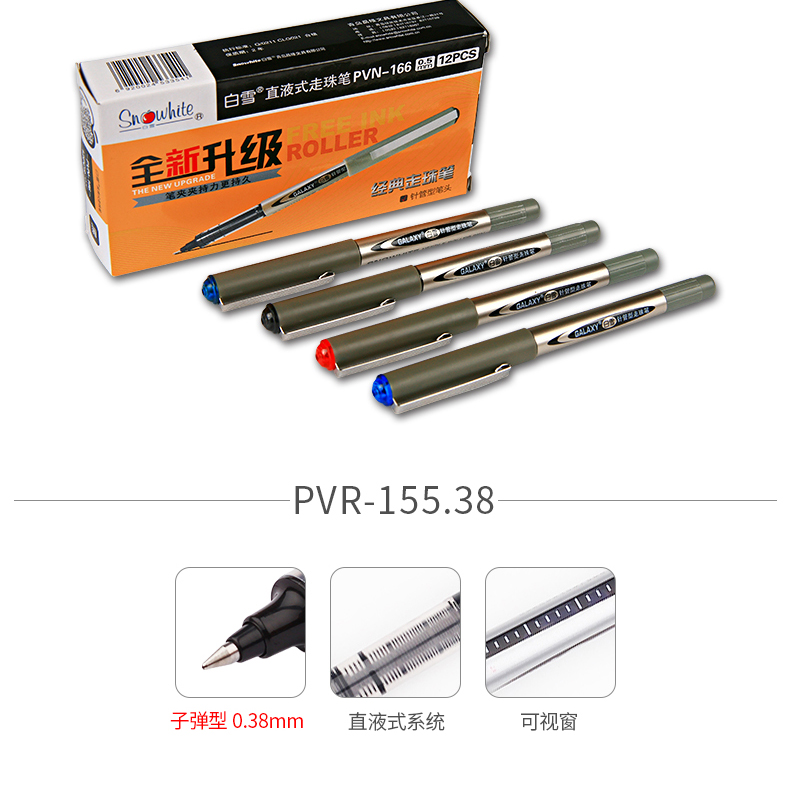 • 商品名稱:白雪(snowhite)直液式走珠筆子彈型0.5mm中性筆PVR-155黑色 12支/盒