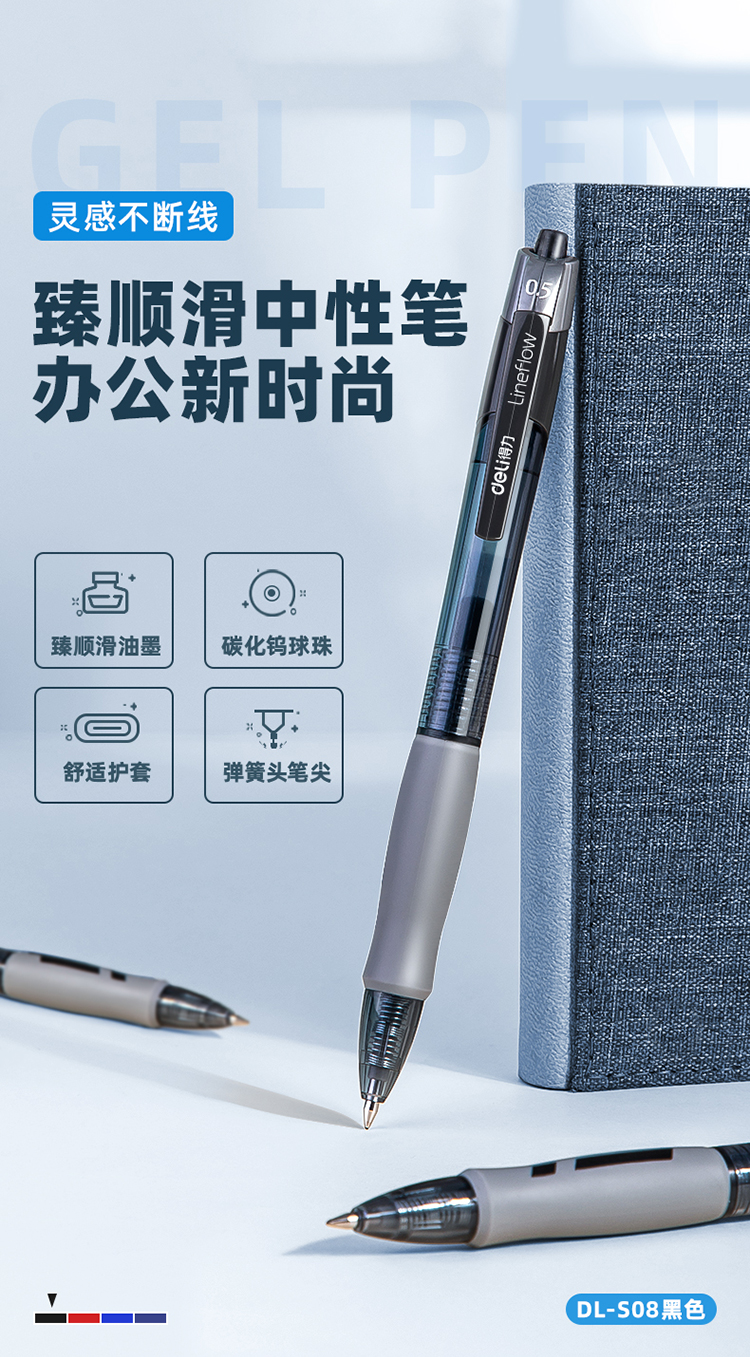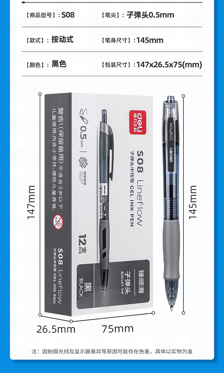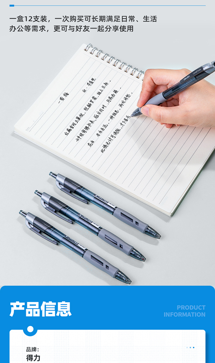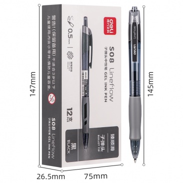 • 商品名稱:得力(deli)臻順滑按動中性筆簽字筆 辦公用品 0.5mm子彈頭 12支/盒S08黑