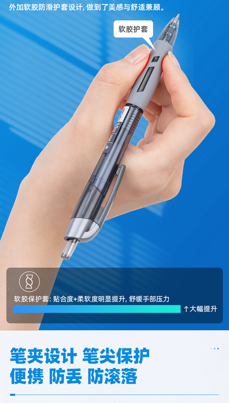• 得力(deli)臻順滑按動中性筆簽字筆 辦公用品 0.5mm子彈頭 12支/盒S08黑