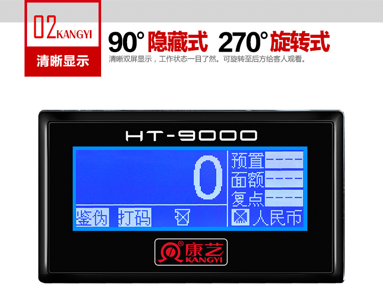 • 商品名稱:康藝(KANGYI)JBYD-HT-9000(A) 冠字號(hào)識(shí)別智能A類點(diǎn)驗(yàn)鈔2019年新幣驗(yàn)鈔機(jī)